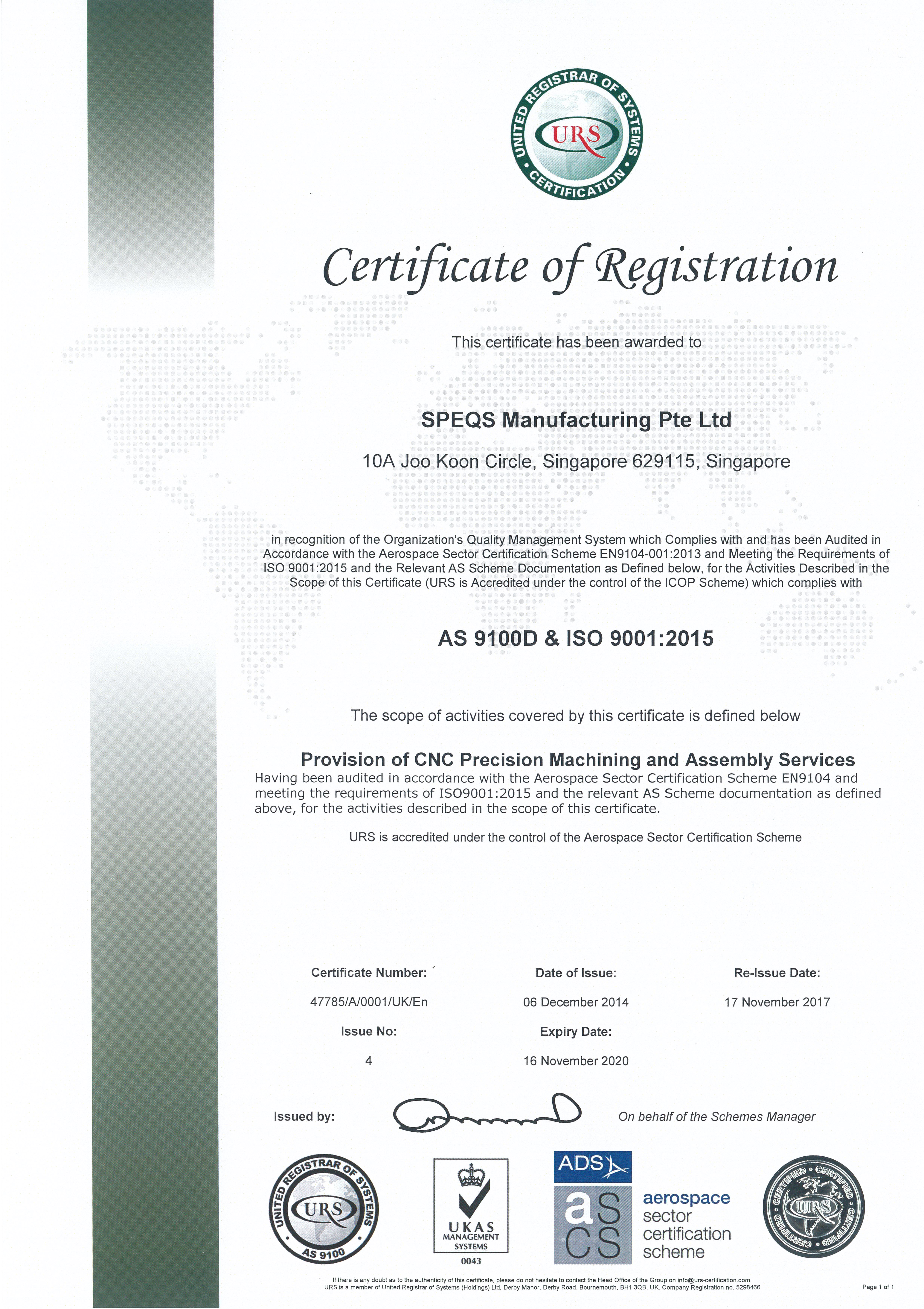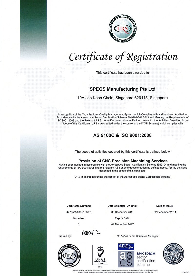 We have a strong Quality management system accredited to AS 9100:2009 and ISO 9001:2008 since 2008. SPEQS can conduct process capability studies (Statistical Process control) to 6 Sigma, as and when required by our customers.